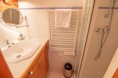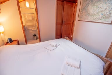 The first bedroom is on the ground floor, a double bed (160cm) and an en-suite shower. The second bathroom (bathtub) is also on the ground floor.