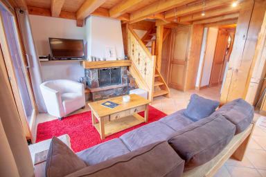 Large living room with fireplace perfect for a quiet evening after a great day of ski.