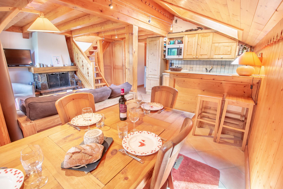 Duplex apartment of 72m² for 7 pers, located in Meribel, Morel neighborhood, just in front of the chairlift. Wifi, Private parking, fireplace.