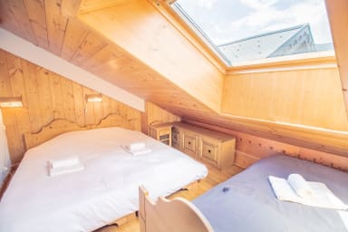 Upstairs, you will find the second bedroom (a 160 double bed and a single bed). The last two single beds are in an open space on the second floor.