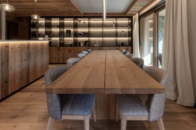 On one side, there is a large open-plan living room for moments together. On the other, there are 3 large en-suite bedrooms, including 2 family suites with separate mountain corners with bunk beds.